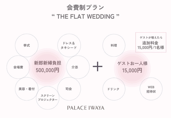【新郎新婦自己負担 50万円】+【ゲスト会費 1.5万円/1名様】